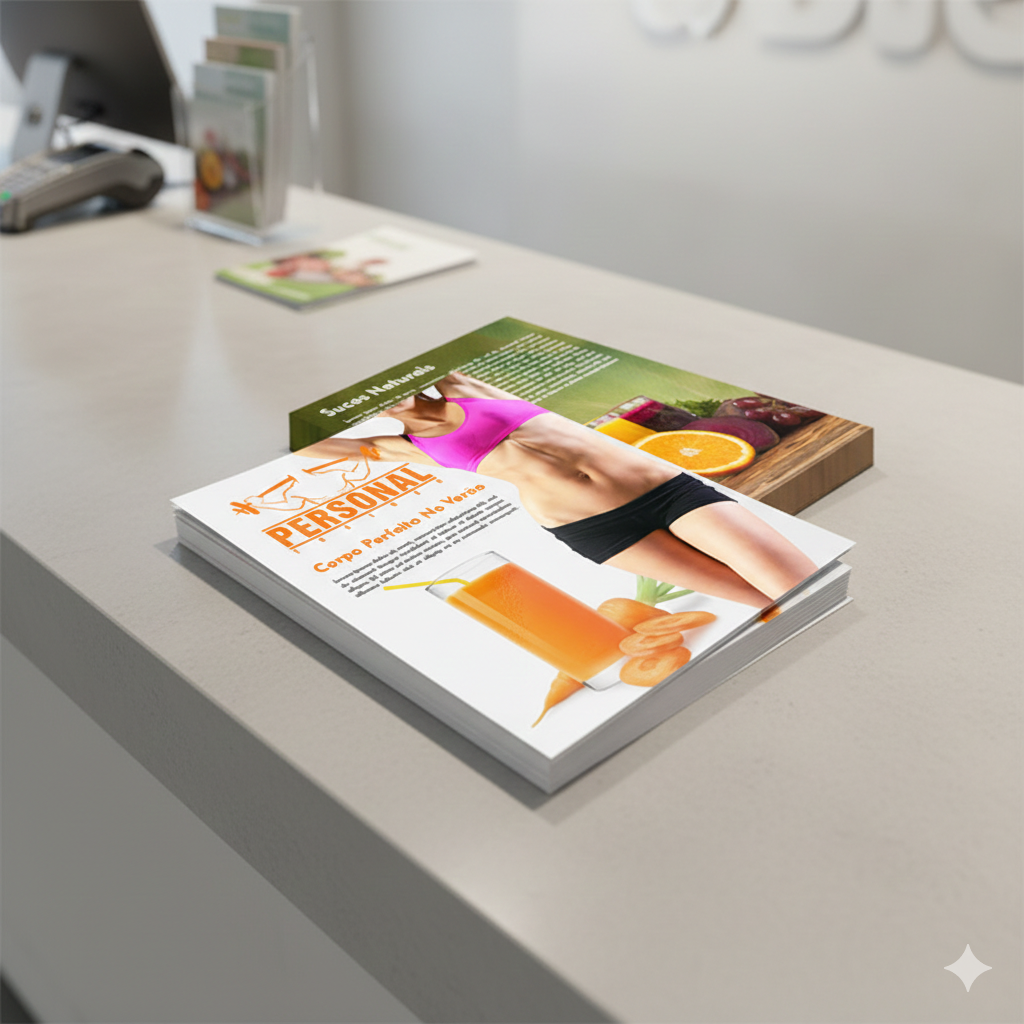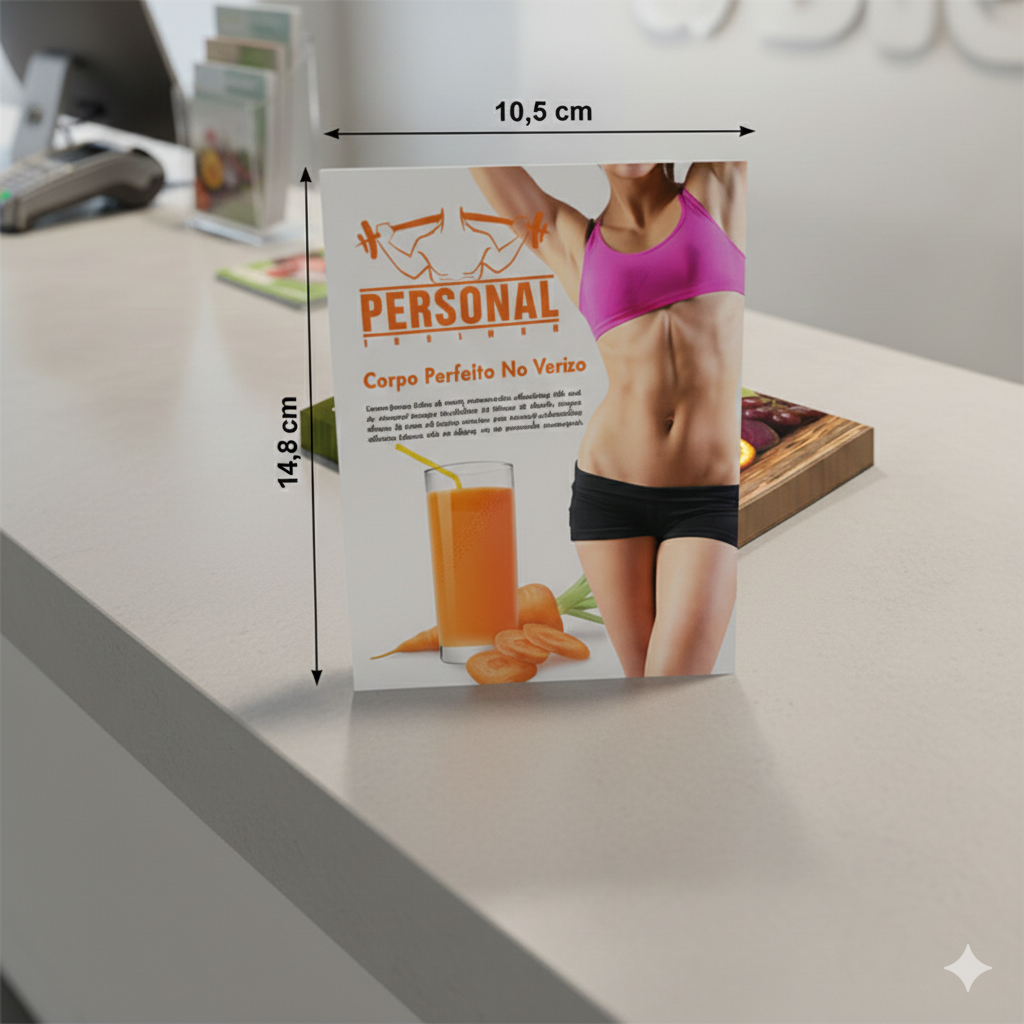 Papel de Alta Qualidade: Produzido em papel de excelência (Couchê ou Offset), garantindo um toque profissional e cores vibrantes que saltam aos olhos.